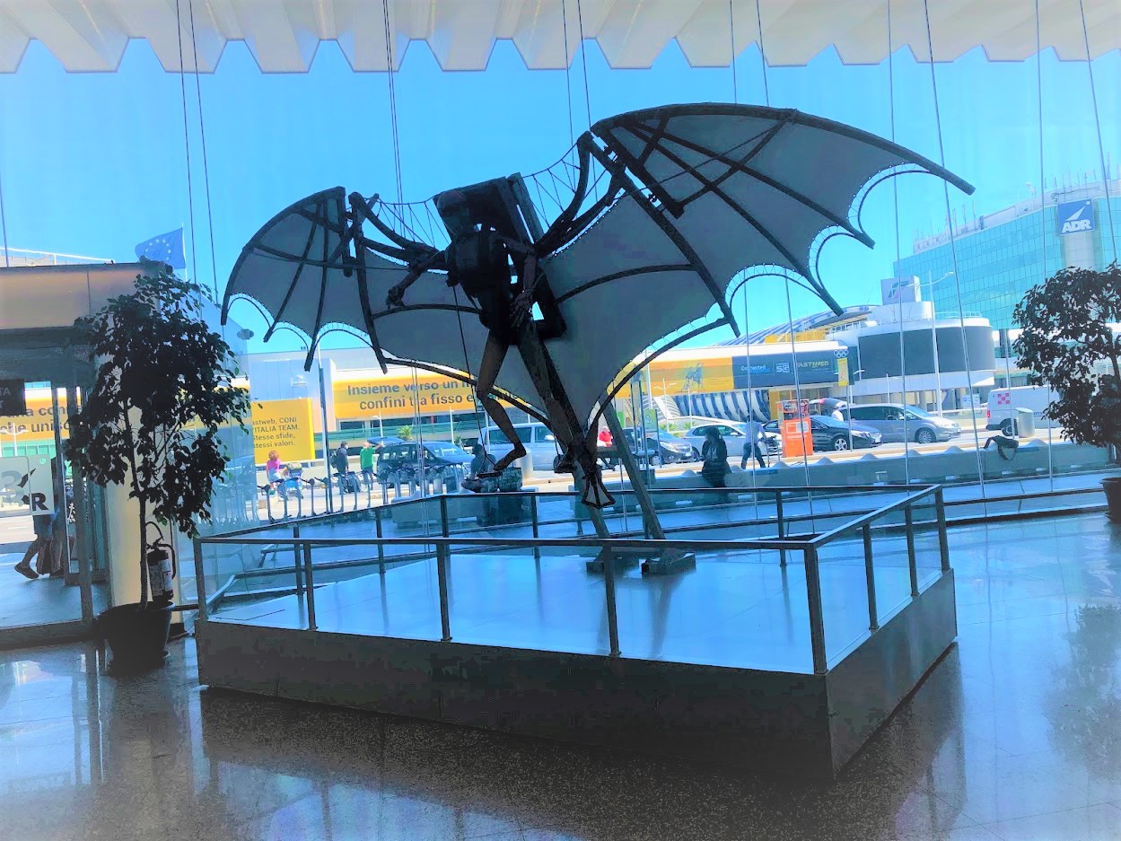 Departing from Terminal 1 at Fiumicino, I was pleasantly surprised to encounter a brief but enriching cultural moment. The terminal showcased an exhibition titled “The Wings of Leonardo: The Genius and Flight.” Inaugurated in May of the previous year, the exhibition featured remarkable pieces such as “The Flying Man.” The initiative aimed to recreate the genius mind of Leonardo Da Vinci and explore the history of his pioneering flying machines. Witnessing such cultural richness in an airport departure area is truly commendable, an initiative that I find inspiring and love to see implemented worldwide.