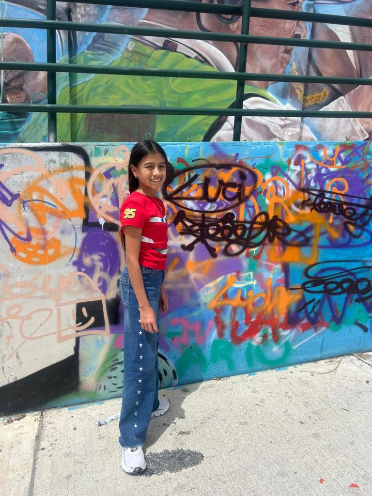 El artista @imprudente87 nos explicó algunas de las técnicas utilizadas en el muralismo, incluyendo “bombas” y “plantillas” y luego nos invitó a crear nuestro propio mural. Yo intenté pintar un tambor, pero terminé pintándome más a mí misma que al mural, ¡así que mejor no les muestro mi terrible resultado! Jaja.