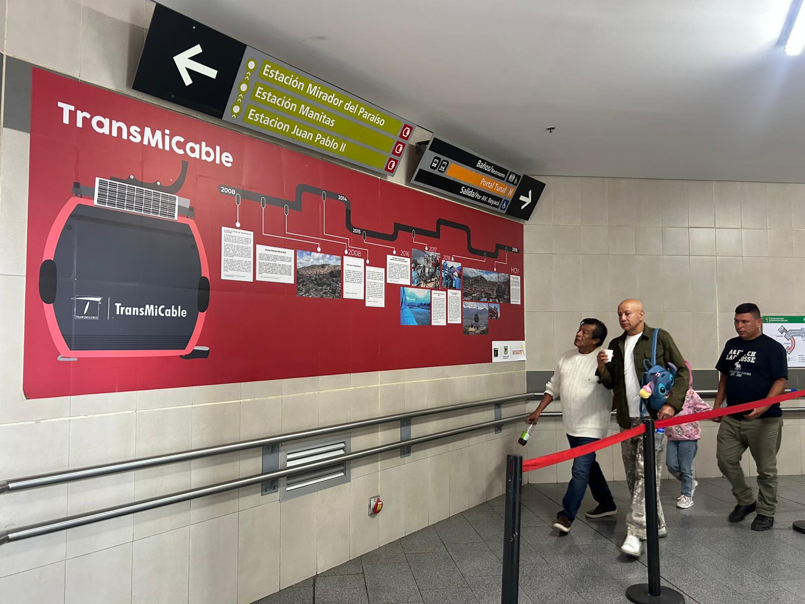 El Portal del Tunal es un centro de conexión muy importante y está sorprendente bien cuidado. La cultura ciudadana va en aumento y cada vez más bogotanos entendemos que este sistema es de todos y para todos. La estación estaba impecable y muy bien señalizada. Desde allí, con el mismo pasaje si no te demoras más de 90 minutos, se puede hacer el transbordo al TransMiCable. Son solo tres paradas desde el Portal del Tunal: Juan Pablo II, Manitas y finalmente Mirador del Paraíso. Allí nos esperaba Andrea.