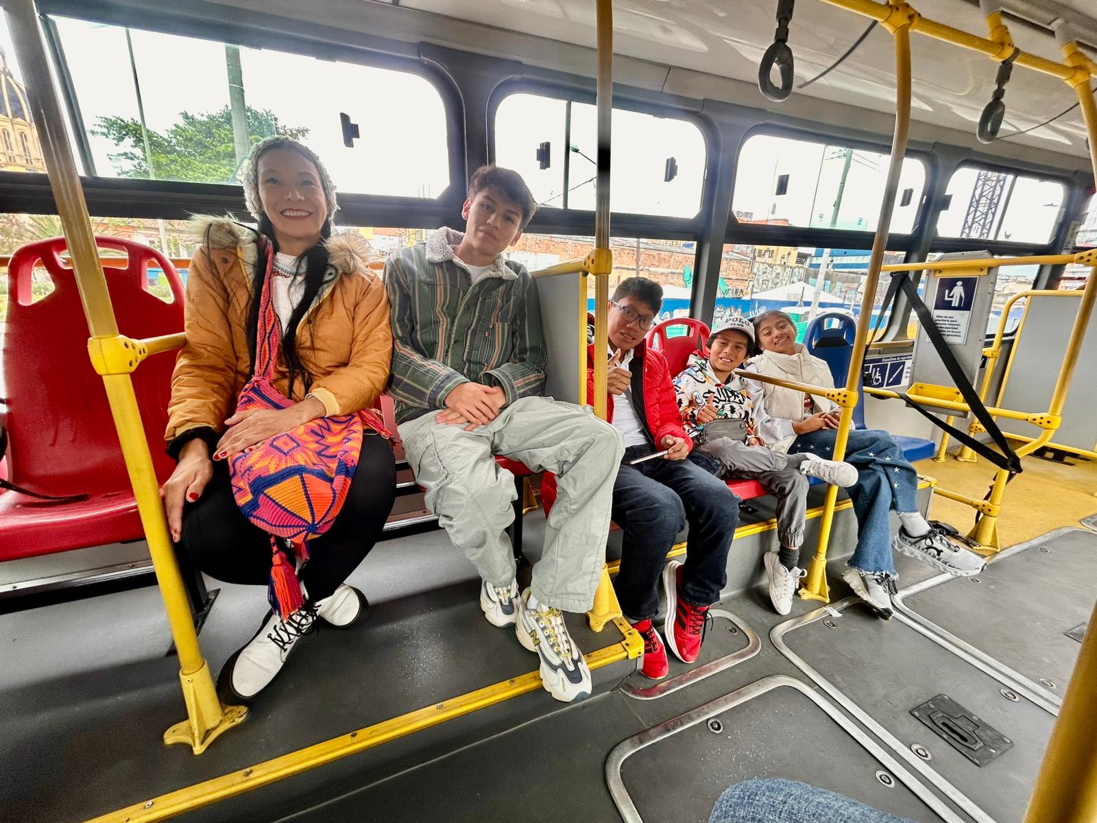 Durante el trayecto en TransMilenio, mis bellos y bellas acompañantes Lalo, Sandra, Beto, Sami, Mati, Tomás, Luciana y yo nos moríamos de la risa. Estábamos turisteando en nuestra propia ciudad!. Entre la novedad de montar en TransMilenio, las risas, los vendedores ambulantes, uno que otro pasajero intentando colarse sin pagar y la energía del sistema, la pasamos genial. Yo era una de las dos personas que sí había usado TransMilenio muchas veces, ¡y eso que no vivo en Colombia! Así que yo era la narradora oficial, jaja. Aventuras citadinas del transporte público, muy al estilo metro de Europa, pero con sabor bogotano.